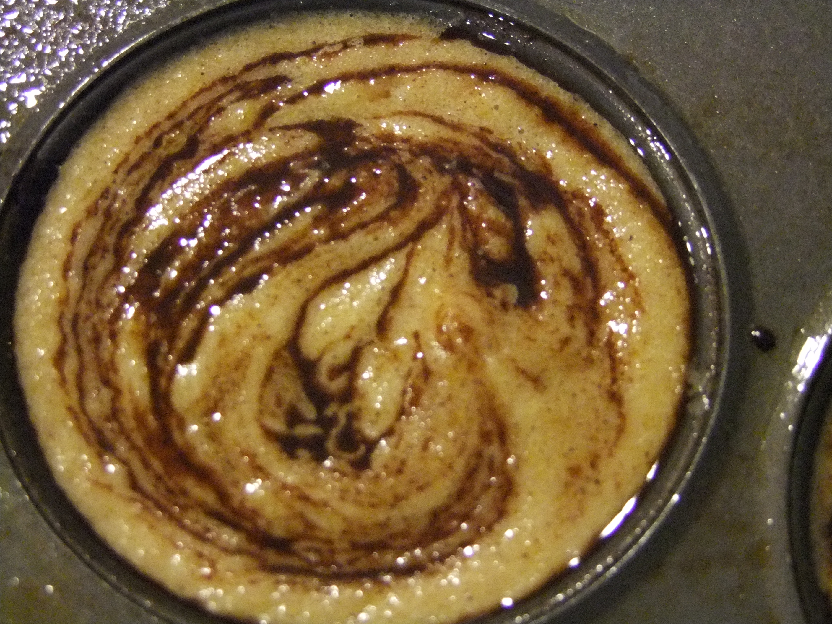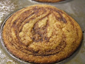 - Top each muffin with a half teaspoon of Cinnamon and use a toothpick to swirl into the batter gently.
