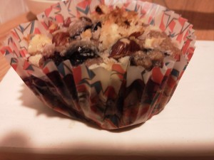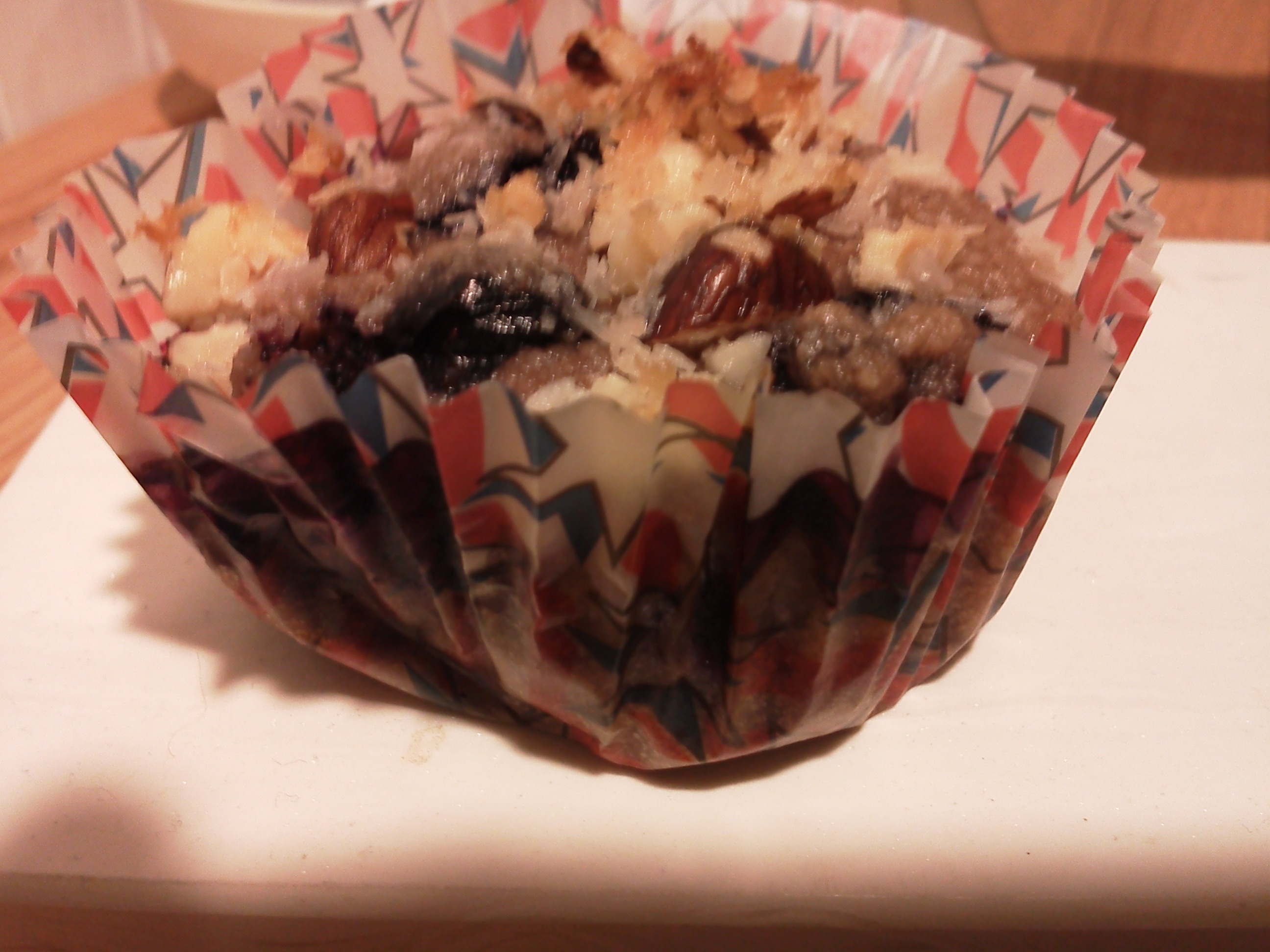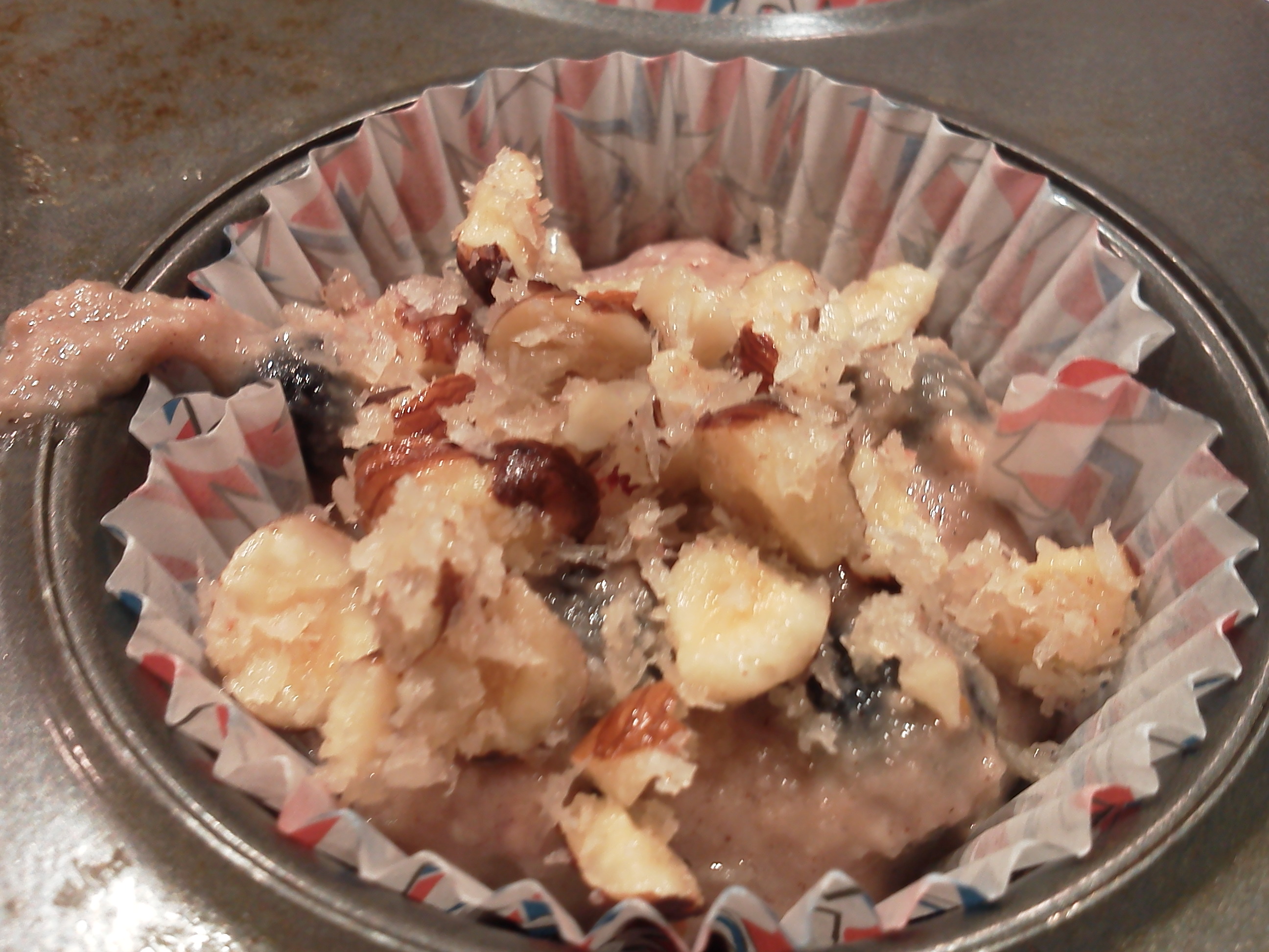 - Pour into muffin cups 2/3 of the way full. Top with Hazelnut topping.