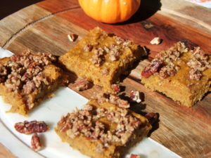 Warm Pumpkin spice bars are one of my favorite Autumn treats to whip up for my family. We had our favorite pumpkin recipes from Paleo Magazine. This year, I have been focusing on vegan recipes because I have so many friends who avoid dairy and eggs. These are my Paleo Magazine inspired Vegan Pumpkin Crumb Bars.